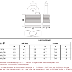 802WN features a steel laminated body with molybdenum shackle which provide sawing, twisting, pulling and cutting resistances and robust protection against attacks. Full coverage jacket and shackle seals are attached to prevent the body from collisionand water-soaking, as well as providing anti-static and weatherproof abilities. Brass cylinder provides bumping, picking and drilling resistances. Drop-shaped cover provides dustproof ability and water resistance. Through color variations they also provide easier managements.