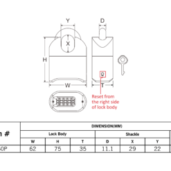 - Hardened steel lock case against damage to surface and Legible brass number wheels with satin nickel plated and black painting